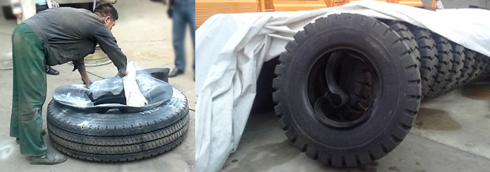 2.装配时应设法在内胎、垫带上均匀涂沫滑石粉,以避免内胎打褶,引起加拿大28开奖预测 碾坏;避免轮辋生热粘接垫带。如右图: