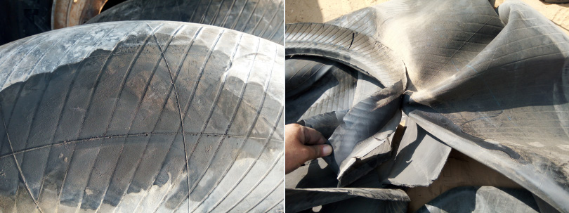 滑石粉涂抹不均,可能引起内胎 垫带损坏。